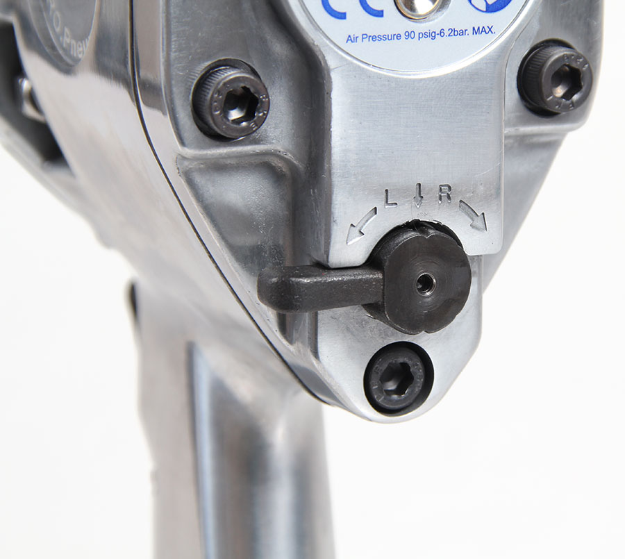 Переключатель скоростей расположена в нижней части рукоятки. Восемь режимов работы (4 на закручивание и 4 на откручивание) обеспечивают комфортную работу с резьбовыми соединениями разных размеров.