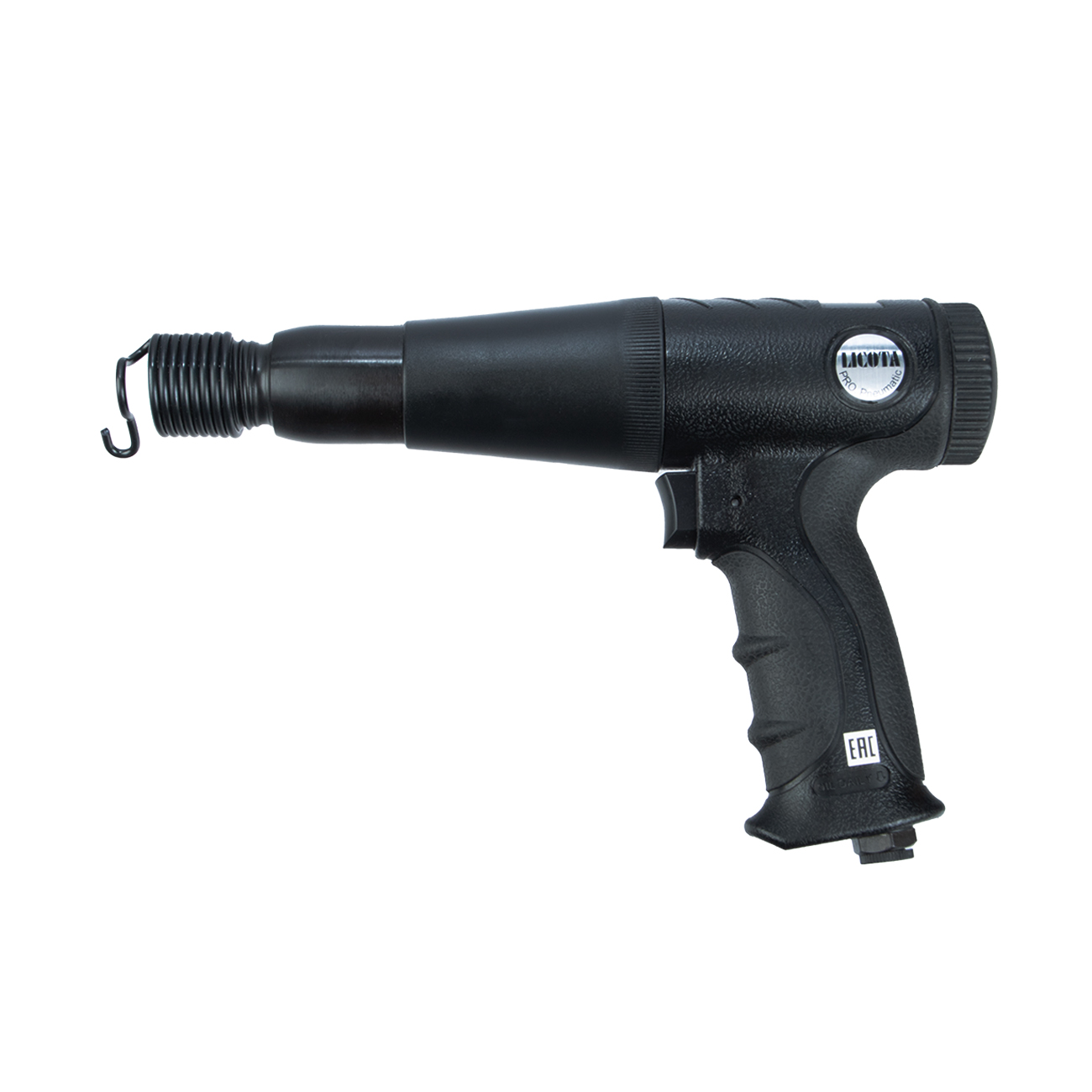 Корпус инструмента выполнен из легкого и прочного композитного материала, регулировка выхода воздуха в любом направлении на 360, что облегчает работу оператора в процессе интенсивной эксплуатации инструмента. При длине 260 мм частота ударов молотка составляет 2200 уд/мин.