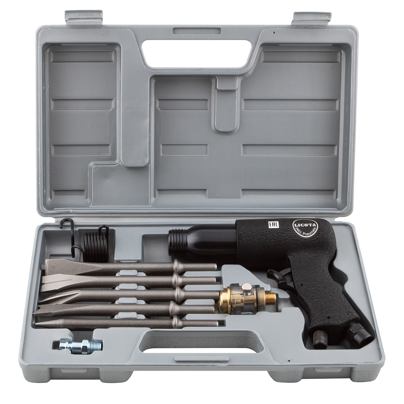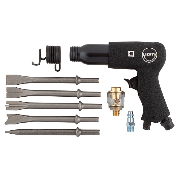 Пневматический молоток в комплекте с зубилами в кейсе 10пр., Энерг. уд. 7,2Дж