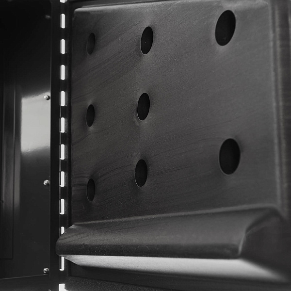 Фронтальная загрузка упрощает размещение крупногабаритных и сложных деталей, позволяя использовать весь внутренний объём камеры. Встроенный светильник, изолированный от рабочей зоны, создаёт равномерное освещение без «слепых зон».