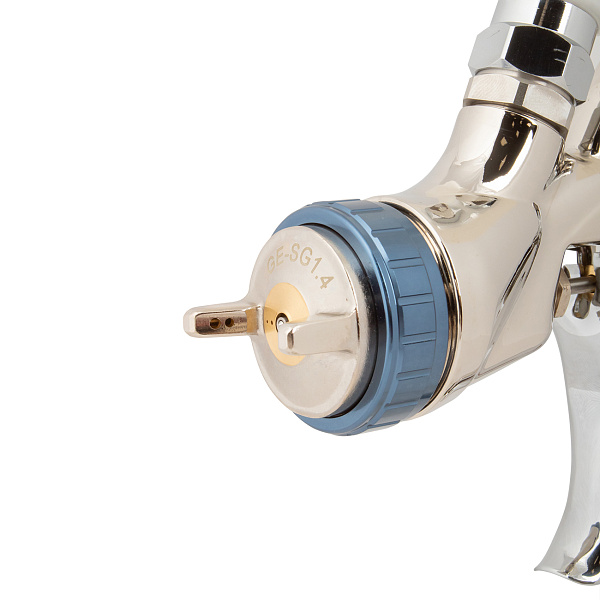 Разные цвета дюз у краскопультов данной серии (GE-SG) позволяют быстро понять, какой инструмент необходим в данный момент и какой состав в него налит. GE-SG1.3 - зеленый цвет; дюза 1,3 мм. GE-SG1.4 - синий цвет; дюза 1,4 мм. GE-SG1.7 - оранжевый цвет; дюза 1,7 мм.