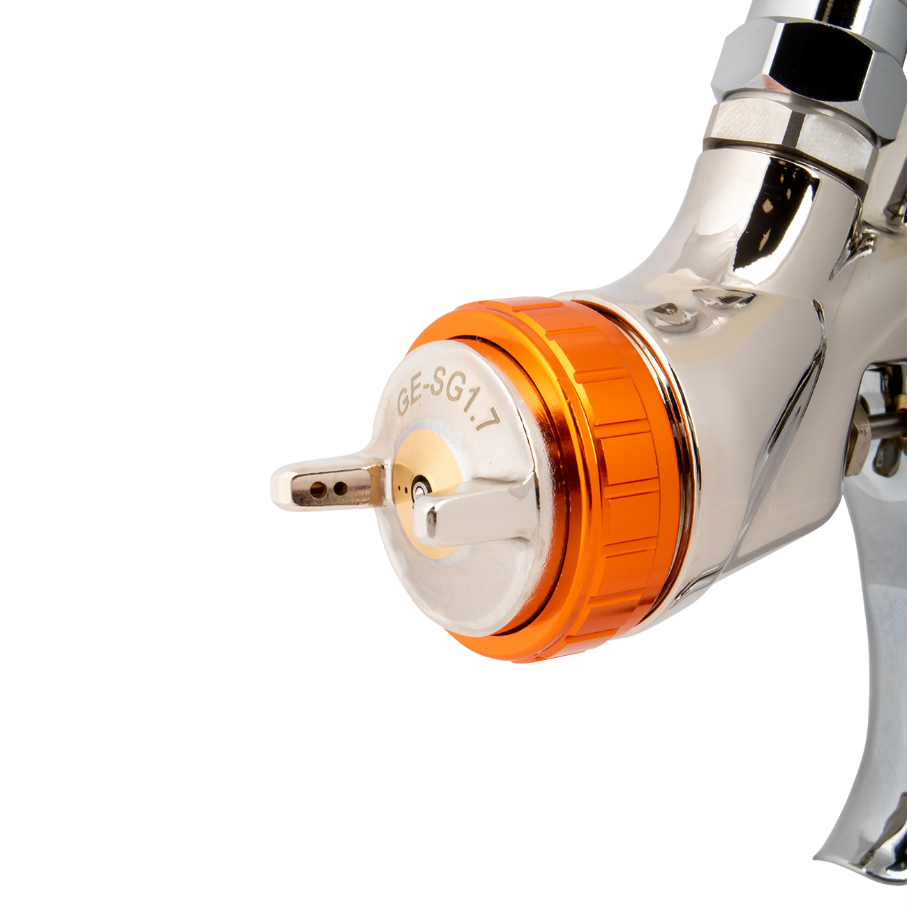 Разные цвета дюз у краскопультов данной серии (GE-SG) позволяют быстро понять, какой инструмент необходим в данный момент и какой состав в него налит. GE-SG1.3 - зеленый цвет; дюза 1,3 мм. GE-SG1.4 - синий цвет; дюза 1,4 мм. GE-SG1.7 - оранжевый цвет; дюза 1,7 мм.