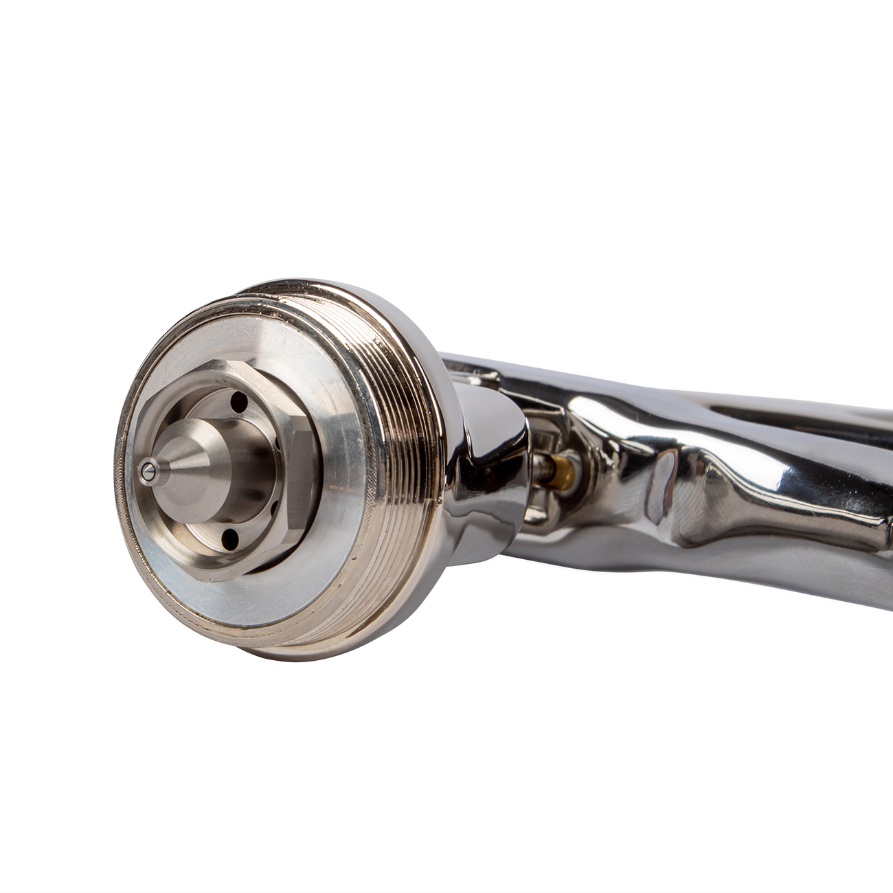 HVLP (High Volume Low Pressure) - самая распространенная и эффективная технология. Перенос материала составляет более 65 % при высокой эффективности и атомизации.
