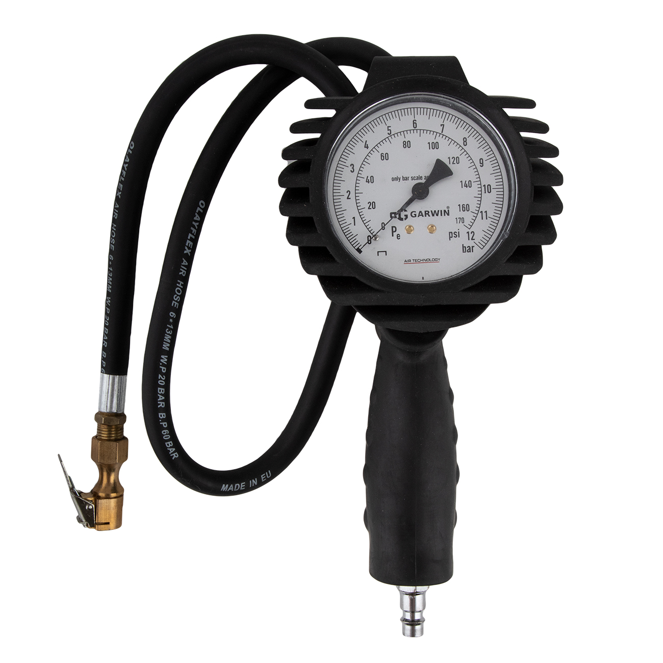 Пистолет для накачки шин GARWIN 806006-01 с универсальной насадкой и механическим манометром для контроля давления.