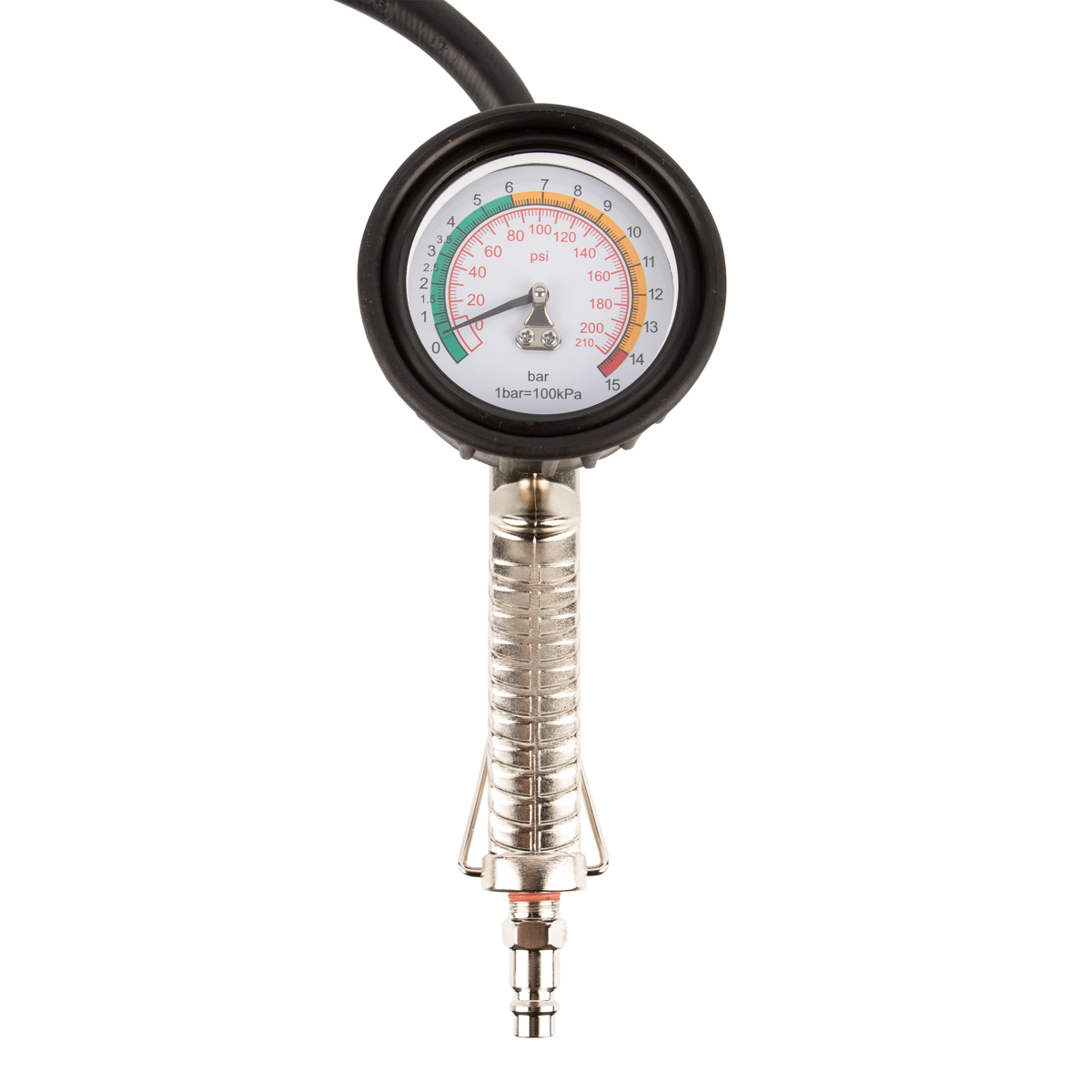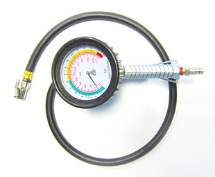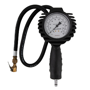 Механический манометр диаметром 2,5 дюйма (64 мм) работает без элементов питания и дает точные показания даже при отрицательных температурах. Двойная шкала позволяет измерять давление в bar и psi, обеспечивая комфортное обслуживание шин от разных производителей и с разными стандартами измерений.