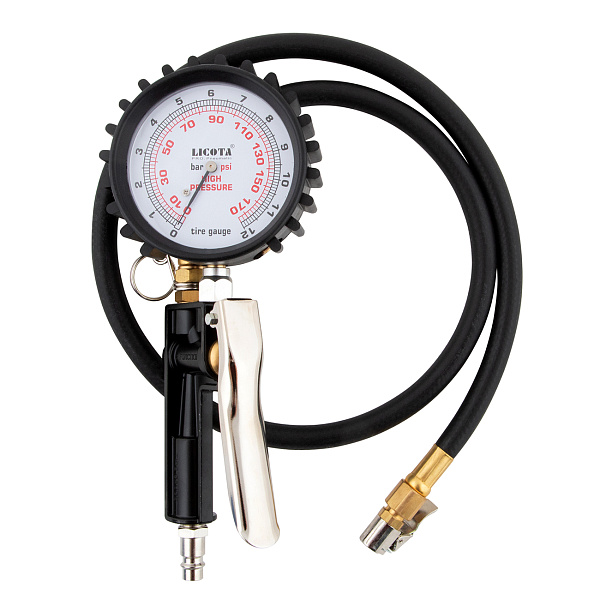 Подкачка шин Licota PAP-D057-4 с механическим манометром для контроля давления и удлиненным шлангом.