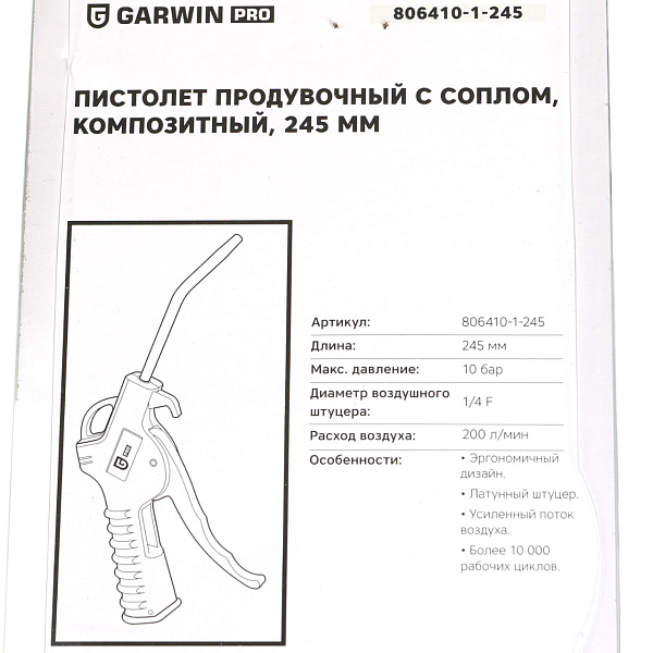 Инструмент обеспечивает эффективную очистку поверхностей от пыли, грязи и других загрязнений с помощью направленного потока сжатого воздуха. Подходит как для профессионального, так и для бытового использования.