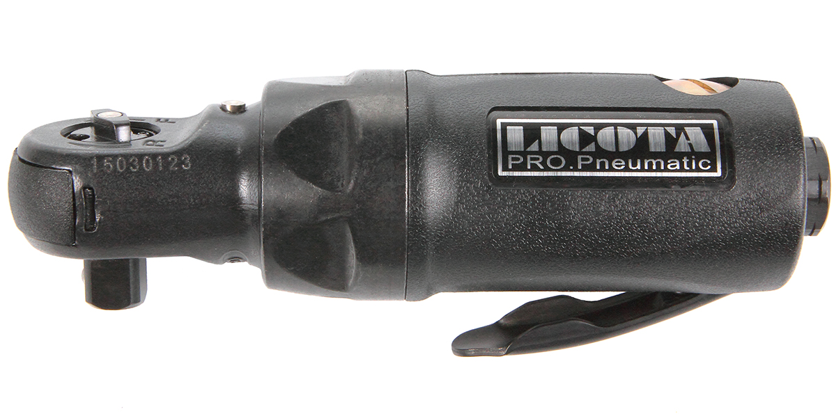 Пневмотрещотка промышленная в композитном корпусе с рычажным включателем и двумя режимами работы (1 на откручивание, 1 на закручивание). Предназначена для ускорения работ по монтажу/демонтажу резьбового крепежа.