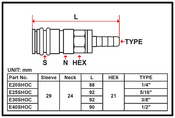 Пневморазъем быстросъемный композитный Licota E20SHOC для быстрого и герметичного соединения элементов пневмолинии.