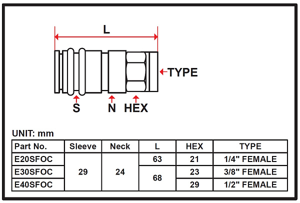 Пневморазъем быстросъемный композитный Licota E30SFOC “мама” для быстрого и герметичного соединения элементов пневмолинии.