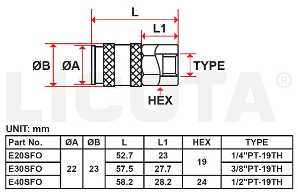 Пневморазъем быстросъемный металлический Licota E40SFO “мама” для быстрого и герметичного соединения элементов пневмолинии.