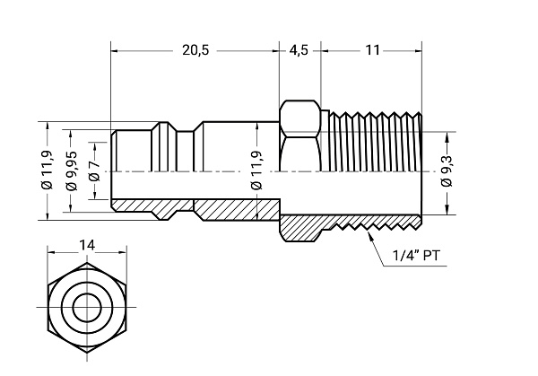 Разъем "папа" - наружная резьба 1/4