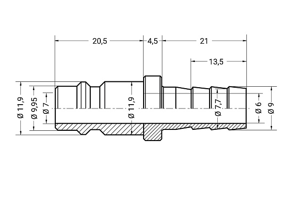 Соединение: разъем "папа" - штуцер "елка" с внешним диаметром 8 мм.