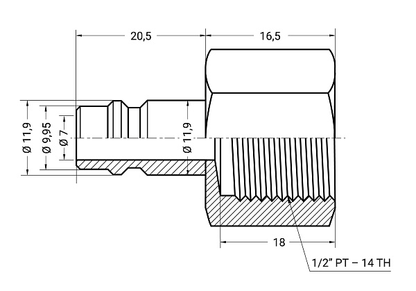 Разъем "папа" с внутренней резьбой 1/2" german type