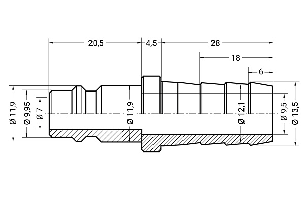 Соединение: разъем "папа" - штуцер "елка" с внешним диаметром 12 мм.