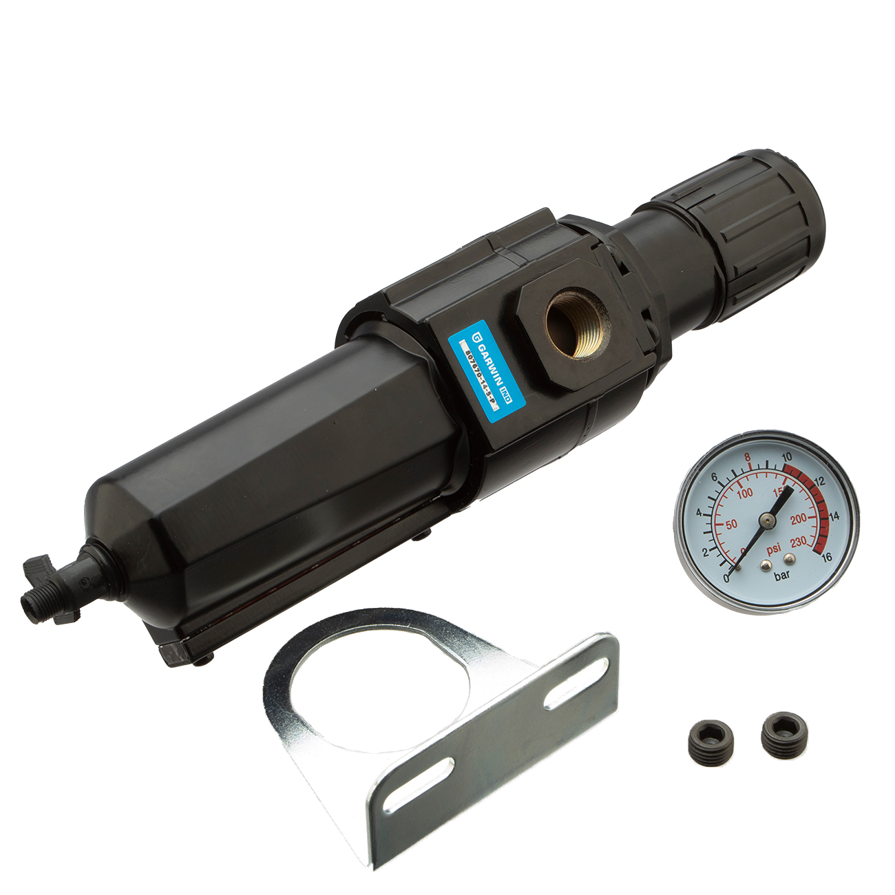 Фильтр-осушитель воздушный с регулятором давления GARWIN 807670-14-5-P для подготовки воздуха в пневмосистеме. Эффективно осушает и очищает магистральный воздух от твердых частиц, масла и влаги, позволяет регулировать выходное давление.