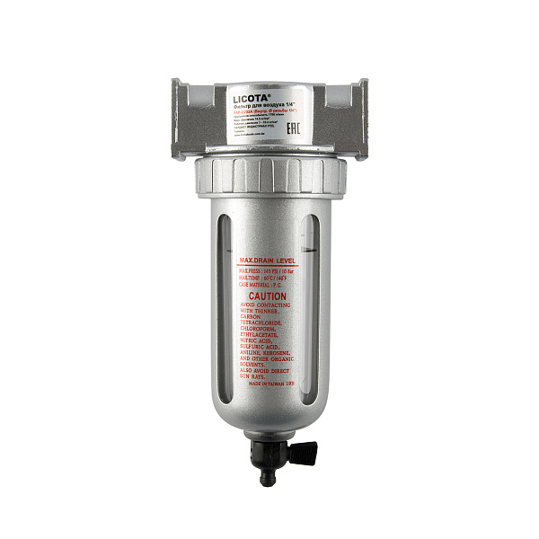 Фильтр-осушитель воздушный Licota PAP-C202B для подготовки воздуха в пневмосистеме. Эффективно осушает и очищает магистральный воздух от твердых частиц, масла и влаги, позволяет регулировать выходное давление.