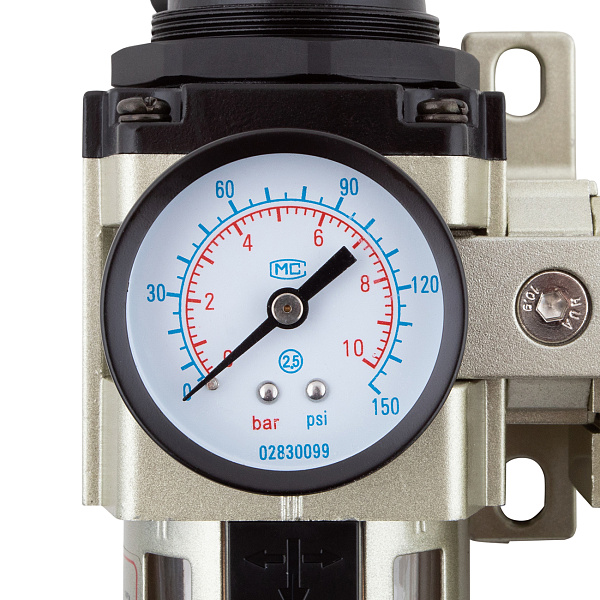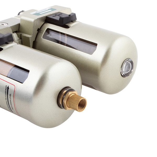 Объединяет воздушный фильтр-осушитель, редуктор с манометром и лубрикатор.