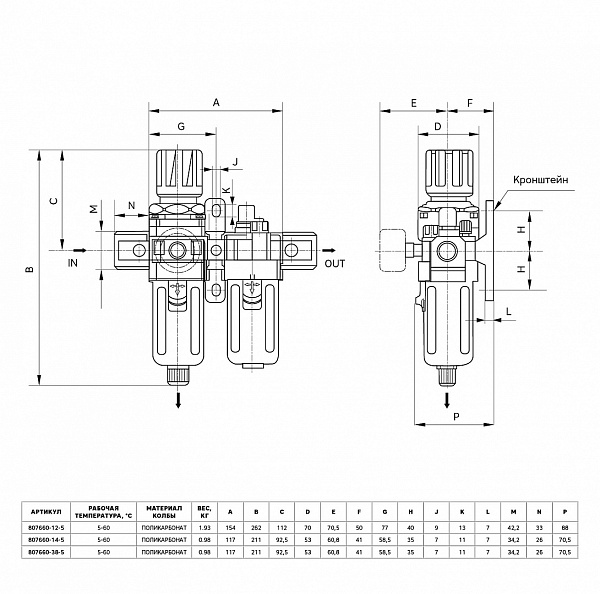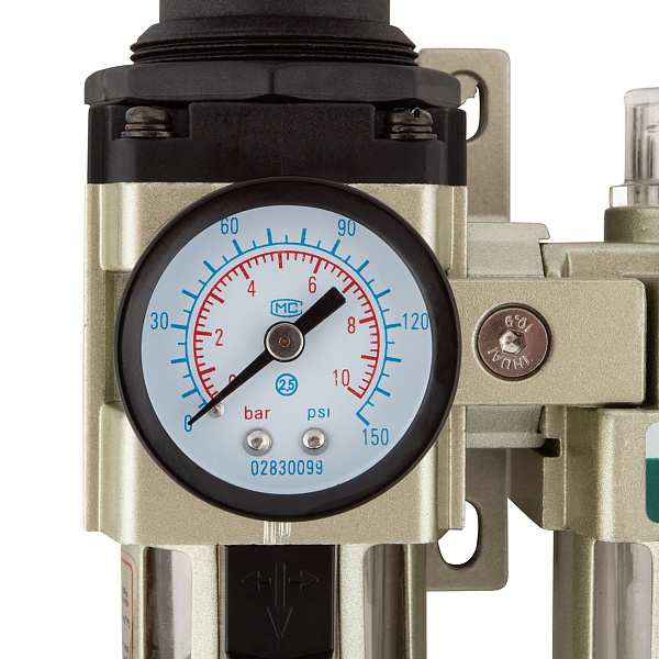 Объединяет воздушный фильтр-осушитель, редуктор с манометром и лубрикатор.