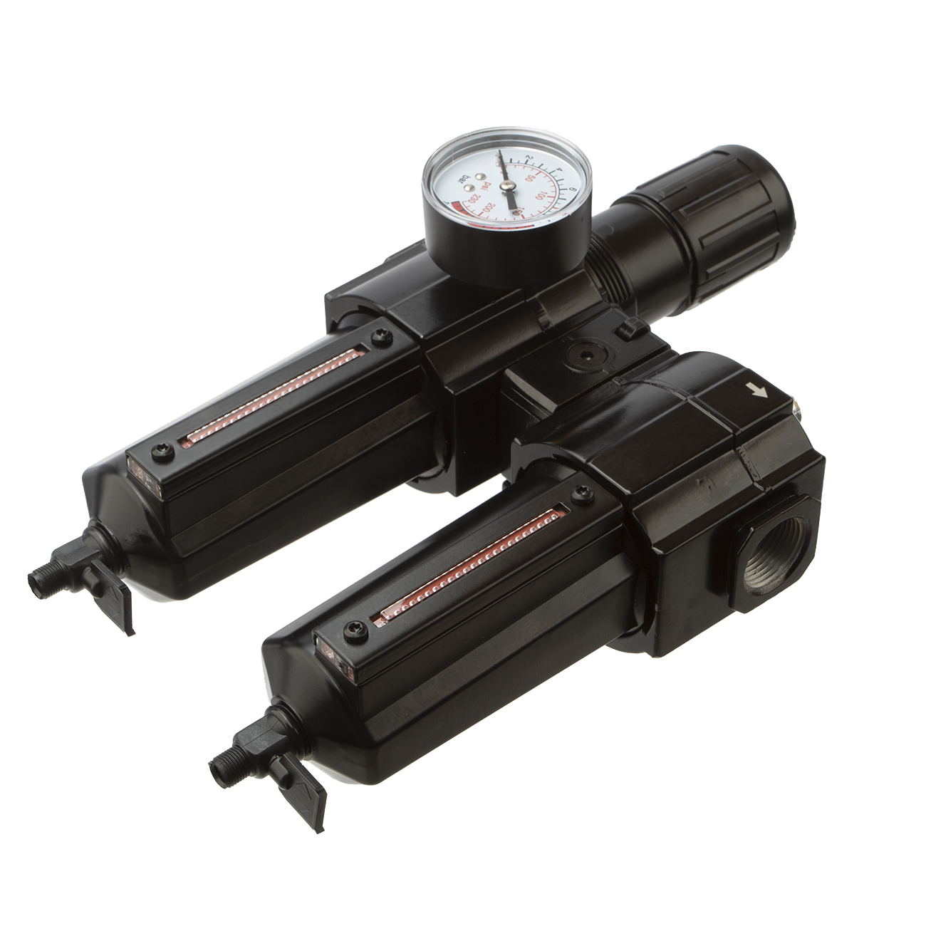 Объединяет воздушный фильтр-осушитель, редуктор с манометром и лубрикатор.