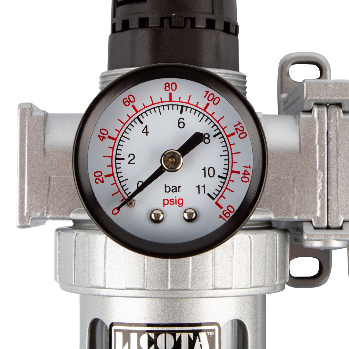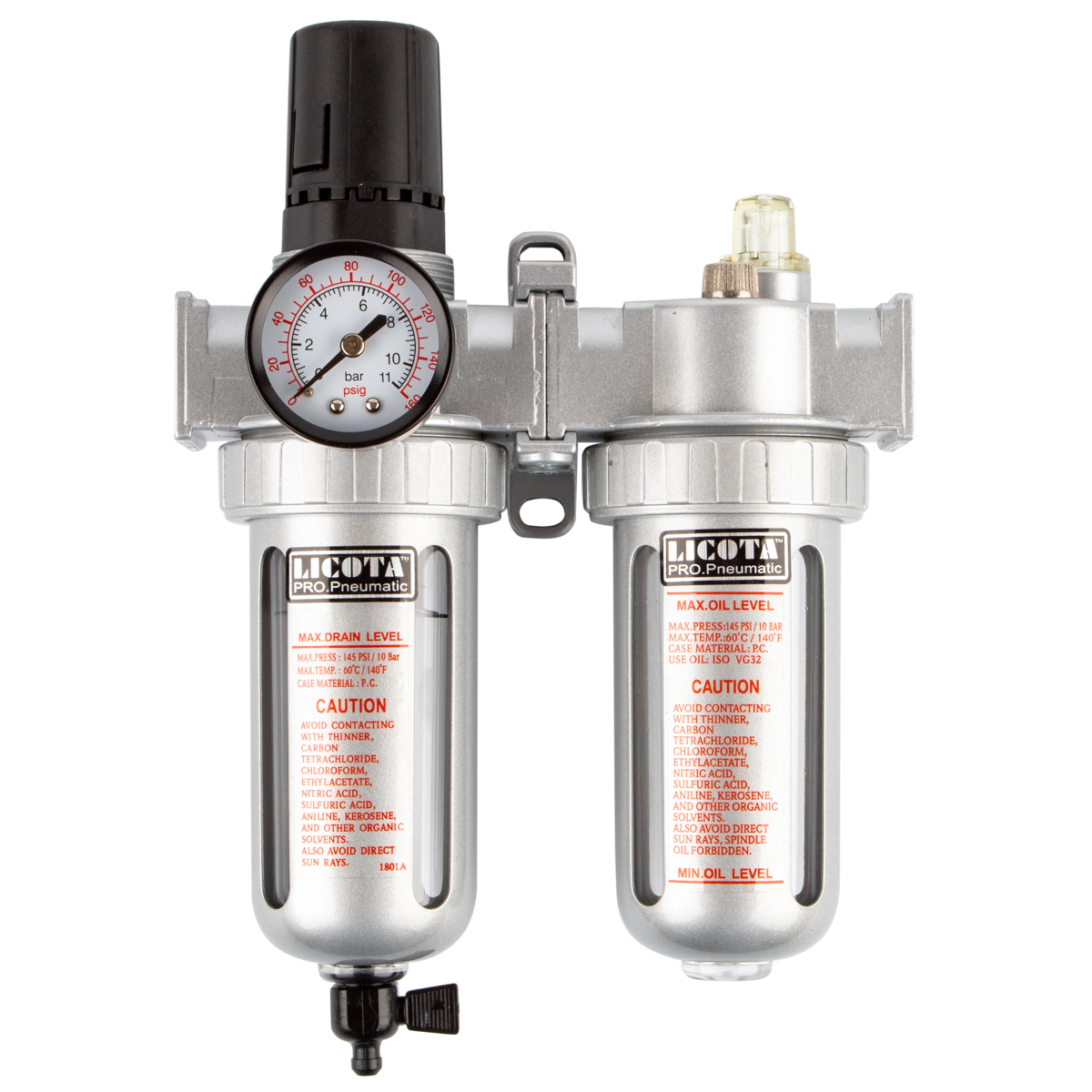 Модульная группа с регулятором давления Licota PAP-C205A - это система подготовки воздуха для работы с пневматическим инструментом. Объединяет воздушный фильтр-осушитель, редуктор с манометром и лубрикатор. Оснащена клапаном сброса конденсата.