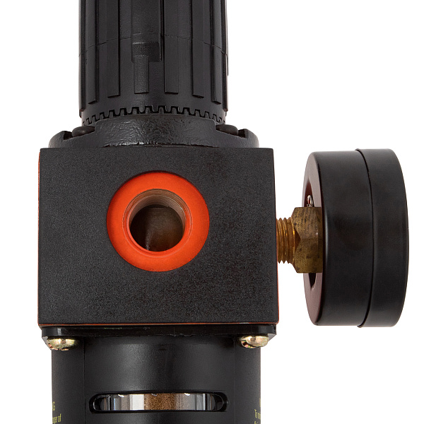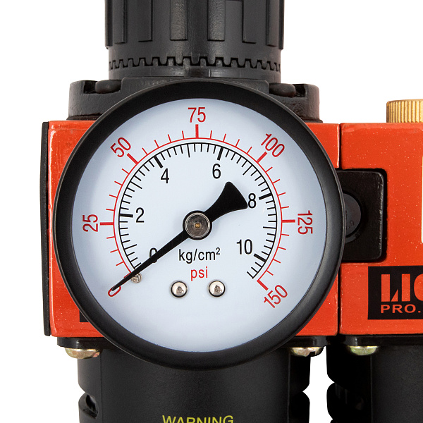 Точная регулировка подачи масла в пневмолинию и давления воздуха. Манометр с двумя вариантами шкалы (PSI и бар) дает работать с разными стандартами измерения давления. Регулятор подачи масла позволяет точно дозировать необходимое количество смазки.
