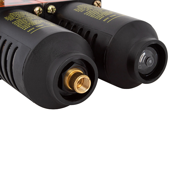 Внутренняя резьба под штуцер - ⅜ дюйма. Пропускная способность - 1200 л/мин. Рабочее давление - 1-9 бар. Объем колб - 80/120 см³.