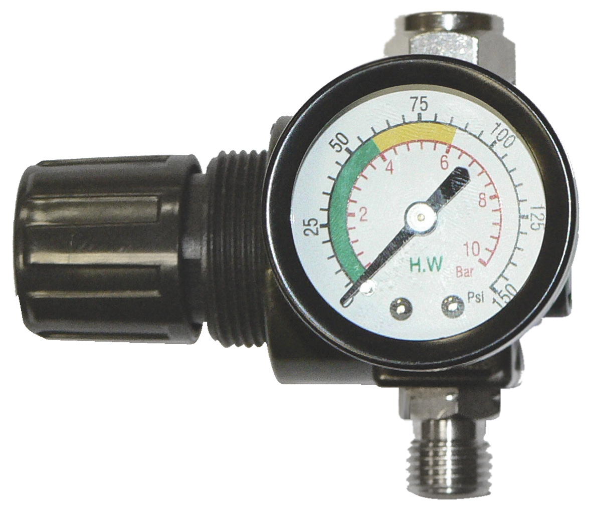 Точная регулировка давления воздуха. Манометр с двумя вариантами шкалы (PSI и бар) дает работать с разными стандартами измерения давления.