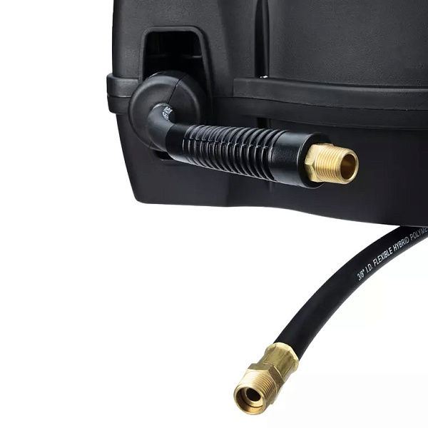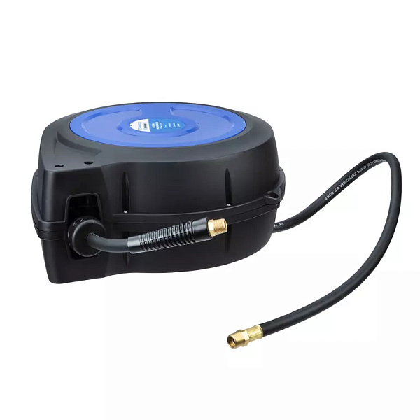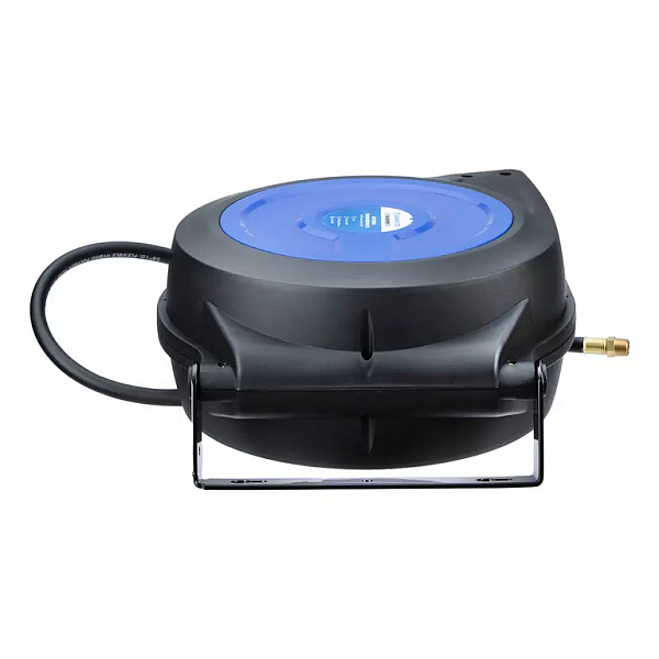 Катушка в прочном пластиковом корпусе обеспечивает дополнительную защиту шланга от внешних воздействий. Поворотное крепление позволяет закрепить катушку в любом удобном месте. Возвратный механизм автоматически наматывает шланг на барабан после отключения. Улучшенный механизм подачи позволяет зафиксировать шланг на любой необходимой длине. Все соединения в катушке герметичны.