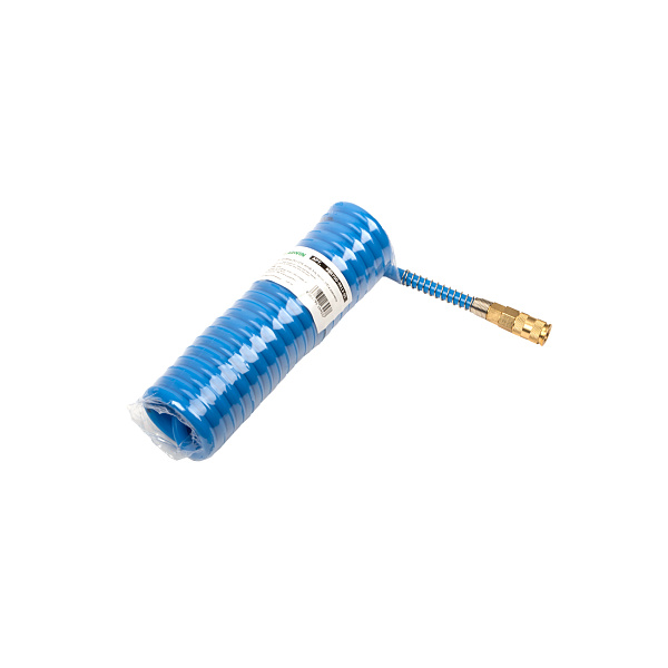Упругая спираль шланга не создает неудобств оператору пневмоинструмента, и после завершения работ принимает прежнюю форму.