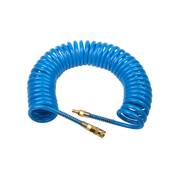 Упругая спираль шланга не создает неудобств оператору пневмоинструмента, и после завершения работ принимает прежнюю форму.
