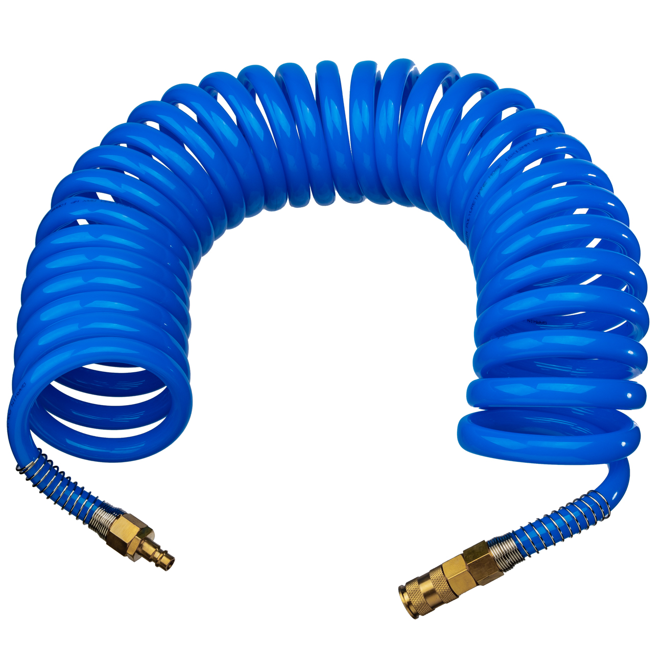 Упругая спираль шланга не создает неудобств оператору пневмоинструмента, и после завершения работ принимает прежнюю форму.