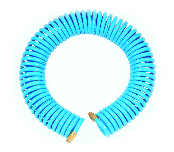 Упругая спираль шланга не создает неудобств оператору пневмоинструмента, и после завершения работ принимает прежнюю форму.