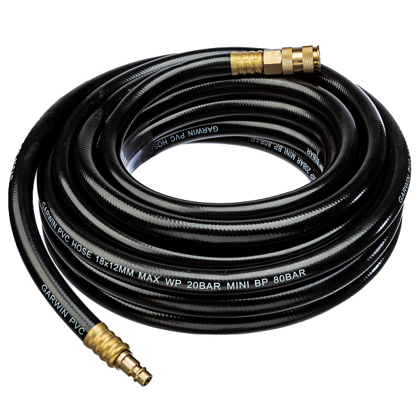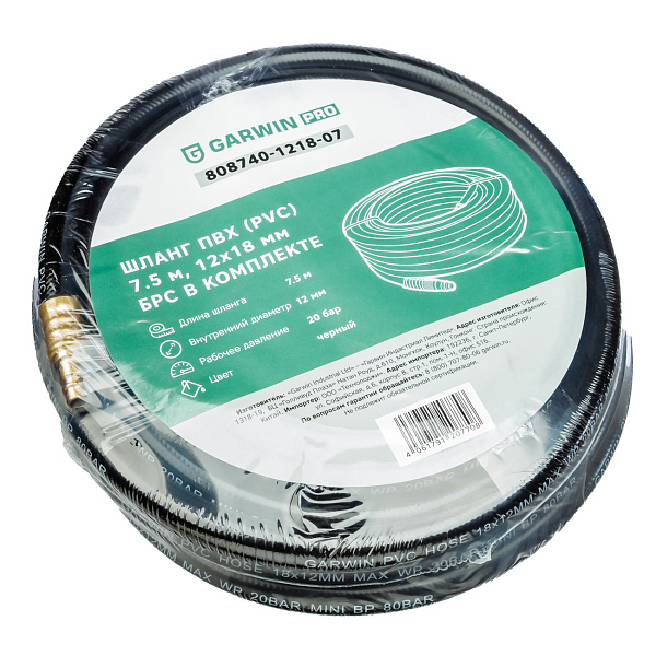 Шланг ПВХ (PVC) 12*18, 7,5 м, черный, БРС в комплекте, в бухте