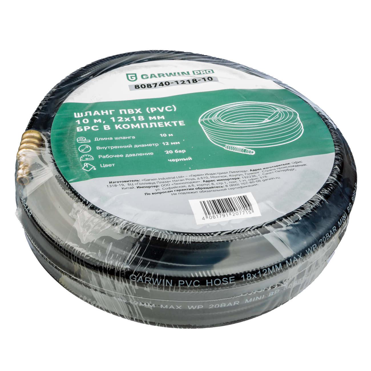 Шланг ПВХ (PVC) 12*18, 10 м, черный, БРС в комплекте, в бухте