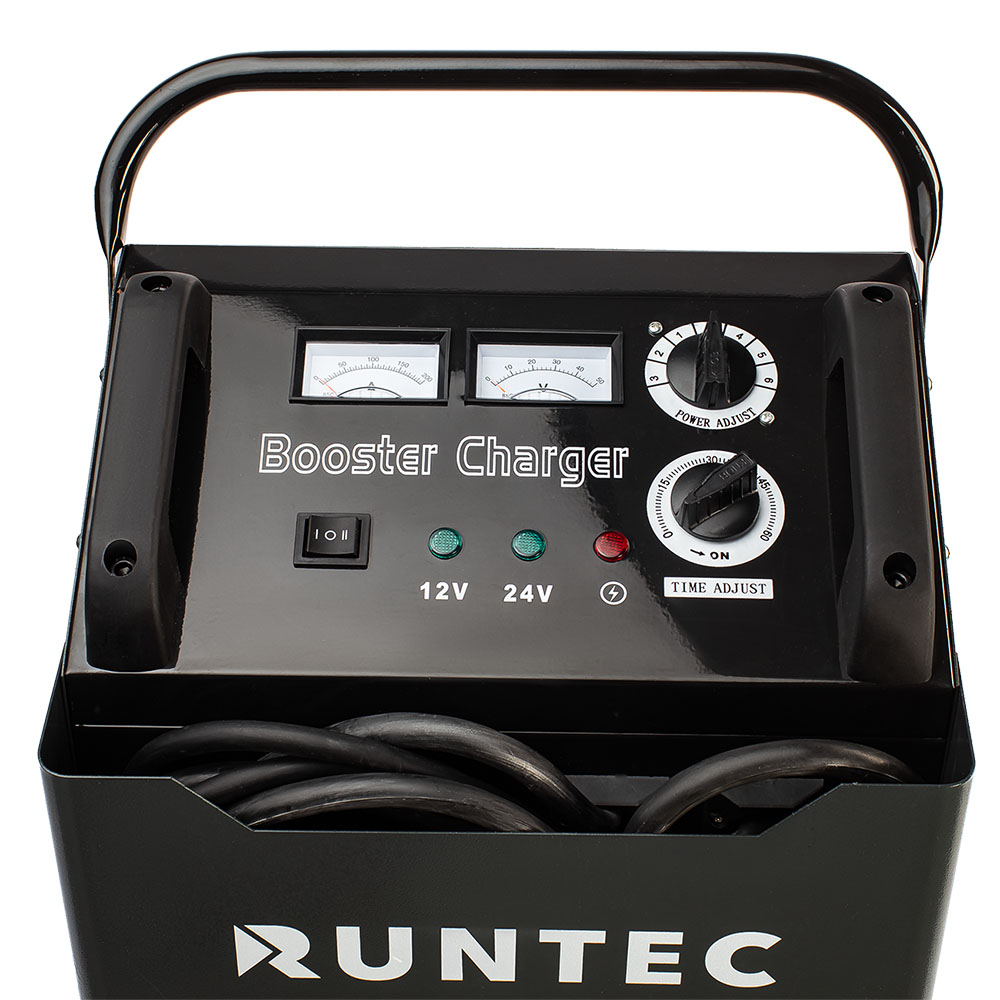 Пуско-зарядное устройство незаменимо в ситуациях, когда машина не заводится из-за разрядившегося аккумулятора. Чаще всего необходимость использования пускового устройства возникает зимой, когда от холода снижается мощность аккумулятора. Однофазное пуско-зарядное устройство RUNTEC RT-CB1000 предназначено для зарядки свинцовых и гелевых аккумуляторов с напряжением 12 В и 24 В для запуска бензиновых и дизельных двигателей мотоциклов, легковых и грузовых автомобилей, строительной и сельскохозяйственной техники. Не имеет встроенного аккумулятора.