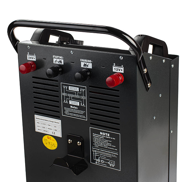 В устройство встроена защита от перегрузок, коротких замыканий и перегрева. Для удобной транспортировки предусмотрены колеса и рукоятка. Прочный металлический корпус предотвращает повреждения. Предусмотрено два режима зарядки: быстрый и медленный. Устройство автоматически определяет емкость аккумулятора и отключается при полном заряде, что увеличивает срок службы аккумуляторов. ПЗУ оснащено функцией запуска (BOOST), которая помогает завести автомобиль при слишком низком напряжении батареи.