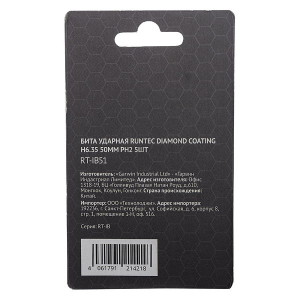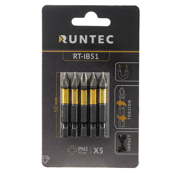 Бита ударная RUNTEC Diamond Coating H6.35 50мм PH2 5шт., RT-IB51
