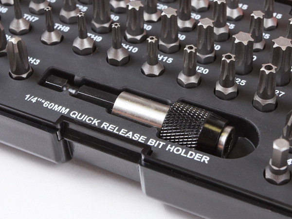 Практичный магнитный битодержатель повышает удобство применения комплекта.