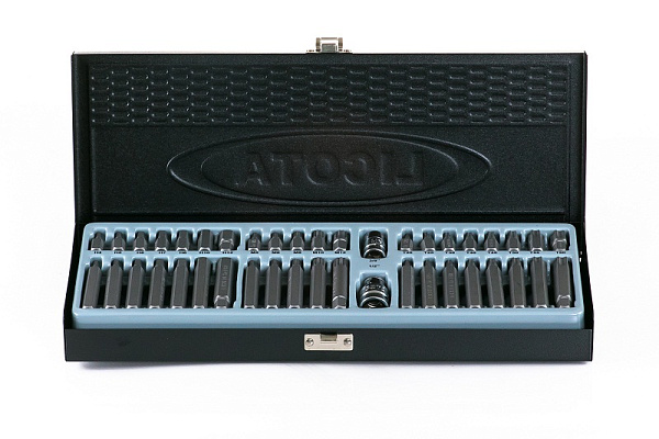 В набор входят биты с хвостовиком 10 мм с рабочими профилями HEX, Torx, Spline и переходники к ним с присоединительными квадратами 3/8” и 1/2”. Каждый размер представлен инструментом длиной 30 мм и 75 мм.