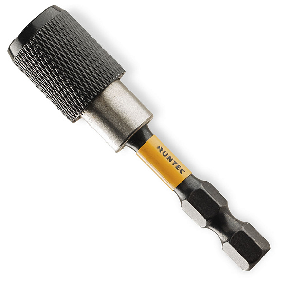 В комплекте магнитный торсионный адаптер для бит с механическим фиксатором, который дополняет торсионную зону ударной биты, увеличивая ее рабочий ресурс. Самоблокирующийся механический замок адаптера надежно удерживает биту. Пружина быстросъемного механизма позволяет заменить оснастку за несколько секунд.