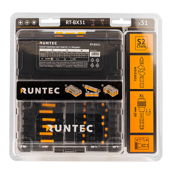 При производстве бит RUNTEC используется только современное оборудование и высококачественные материалы. Строгое соответствие нормам безопасности и стандартам качества гарантирует длительный период эксплуатации и безопасную работу при соблюдении рекомендаций к использованию.