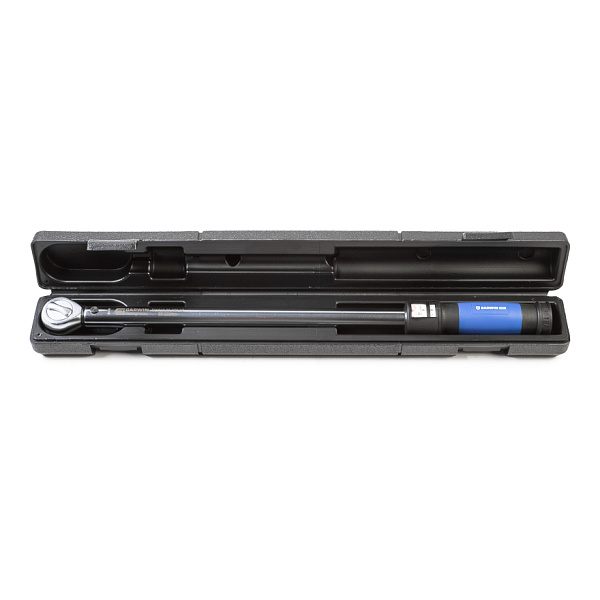 Поворотный фиксатор на торце рукоятки обеспечивает надежную блокировку установленного момента, предотвращая случайное переключение. При достижении установленного момента происходит размыкание динамометрического механизма. Оператор слышит громкий щелчок и ощущает его рукой.