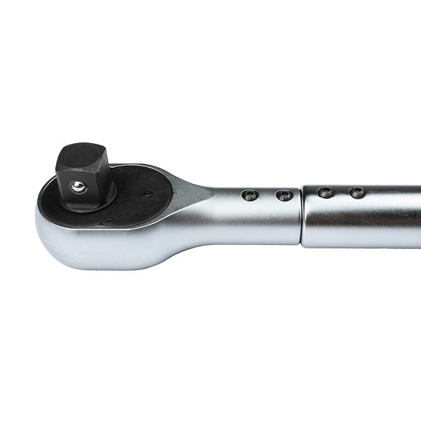 Нажимной фиксатор у верха рукоятки обеспечивает надежную блокировку установленного момента, предотвращая случайное переключение. При достижении установленного момента происходит размыкание динамометрического механизма. Оператор слышит громкий щелчок и ощущает его рукой.