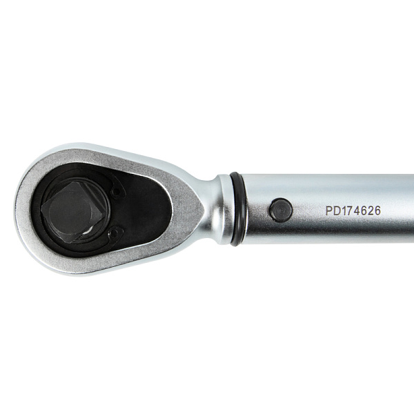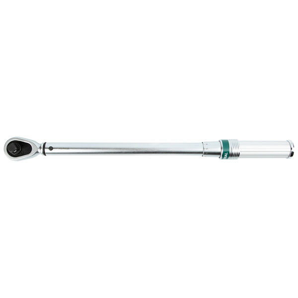 Нажимной фиксатор у верха рукоятки обеспечивает надежную блокировку установленного момента, предотвращая случайное переключение. При достижении установленного момента происходит размыкание динамометрического механизма. Оператор слышит громкий щелчок и ощущает его рукой.