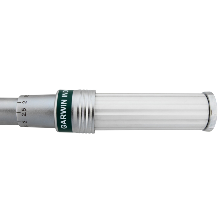 Нажимной фиксатор у верха рукоятки обеспечивает надежную блокировку установленного момента, предотвращая случайное переключение. При достижении установленного момента происходит размыкание динамометрического механизма. Оператор слышит громкий щелчок и ощущает его рукой.