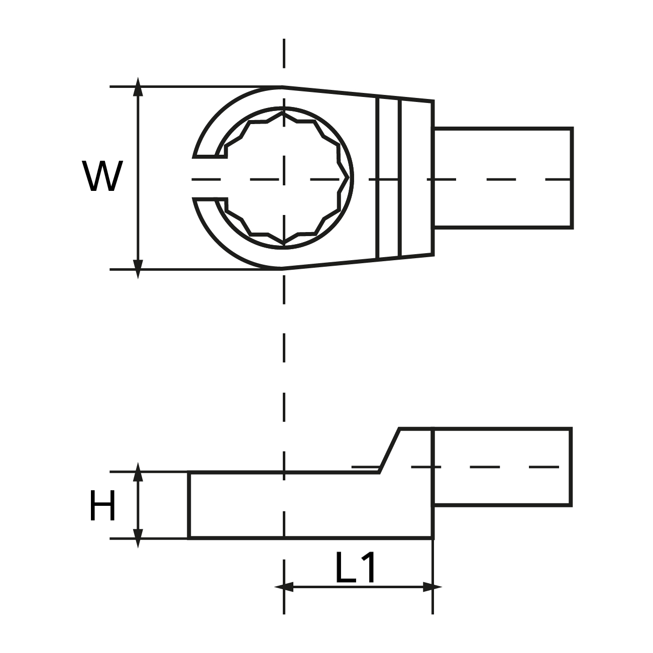 Рабочий профиль из 12 граней подходит к головкам болтов и гайкам как 6-, так и 12-гранного профиля.