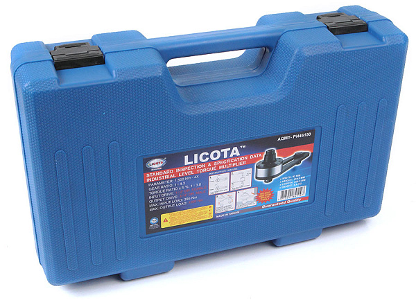 Усилитель крутящего момента (мультипликатор) ручной с опорой на головку Licota AQMT-PN46150 для усиления входного крутящего момента в соответствии с установленным коэффициентом. Используется для обслуживания и ремонта тяжелого грузового транспорта, морских судов, крупной строительной, промышленной техники, фланцевых соединений и объектов дорожно-транспортной инфраструктуры.