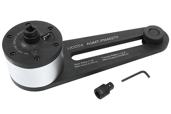 Усилитель крутящего момента (мультипликатор) ручной с опорой на головку Licota AQMT-PN48270 для усиления входного крутящего момента в соответствии с установленным коэффициентом. Используется для обслуживания и ремонта тяжелого грузового транспорта, морских судов, крупной строительной, промышленной техники, фланцевых соединений и объектов дорожно-транспортной инфраструктуры.