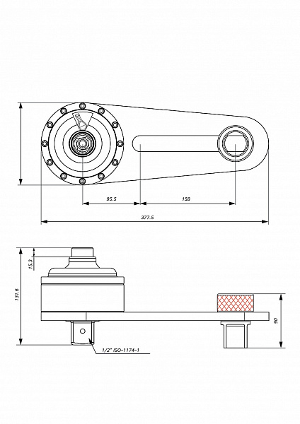 Размер привода - ¾ дюйма. Размер выходного квадрата - 1-½ дюйма. Передаточное число - 1:4,8. Максимальный крутящий момент - 4500 Нм.